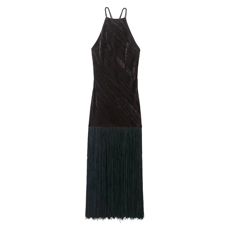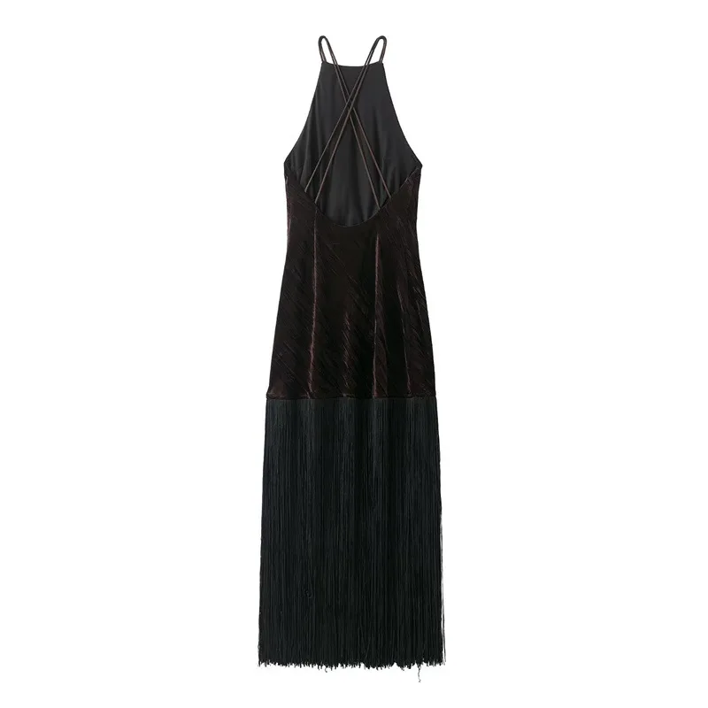 GX1871 Fashion Summer Women Clothes Boutique Sleeveless Evening Long Tassel Dress Sexy Backless Party Maxi Dresses